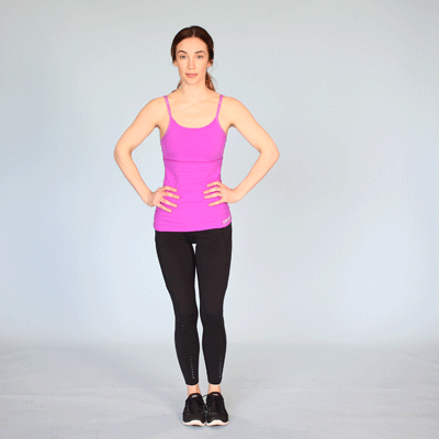 Stand upright with your feet hip-width apart and hold onto a chair or wall for support.