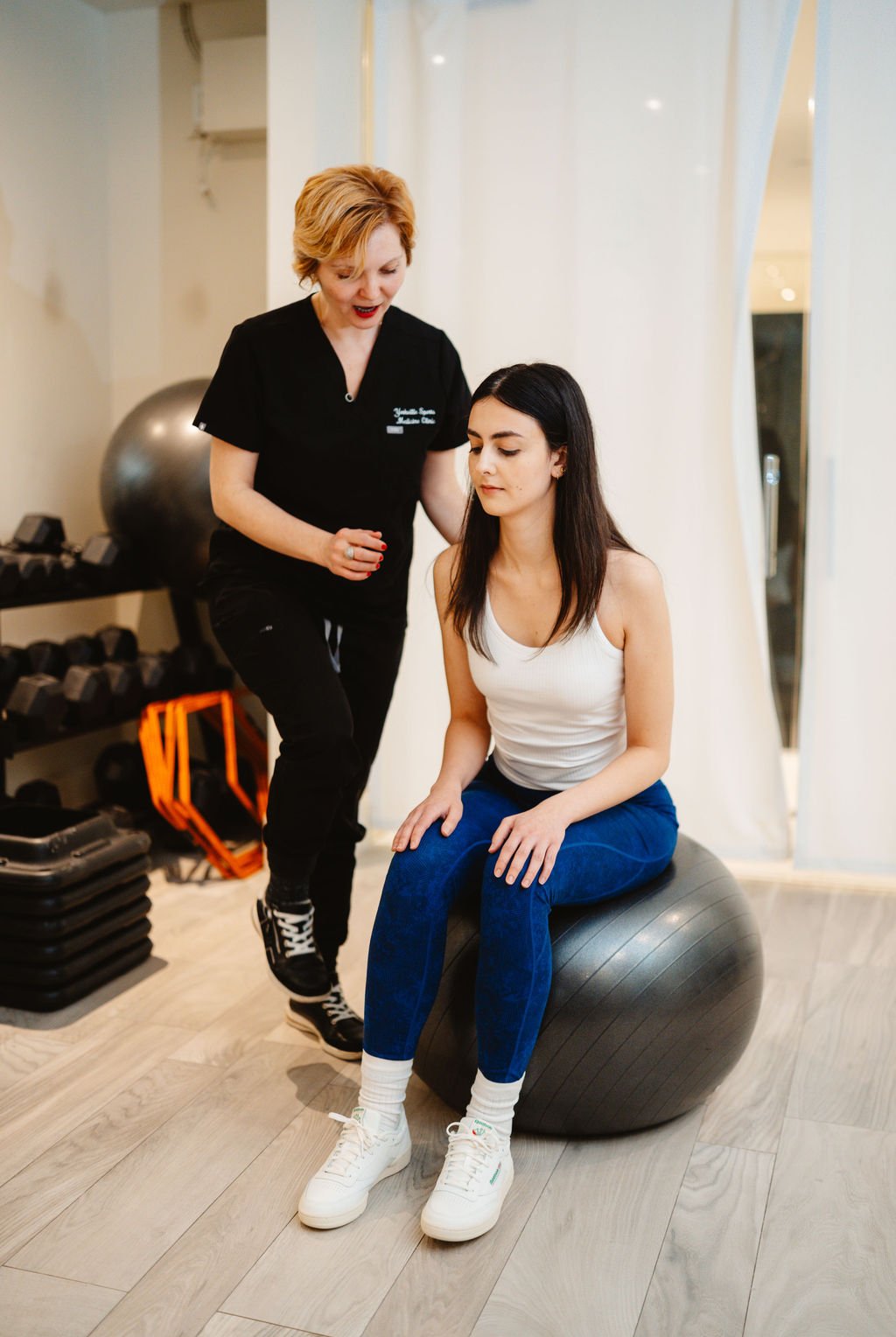 Muscle strength, posture, breathing, and pelvic control are assessed respectfully and professionally.